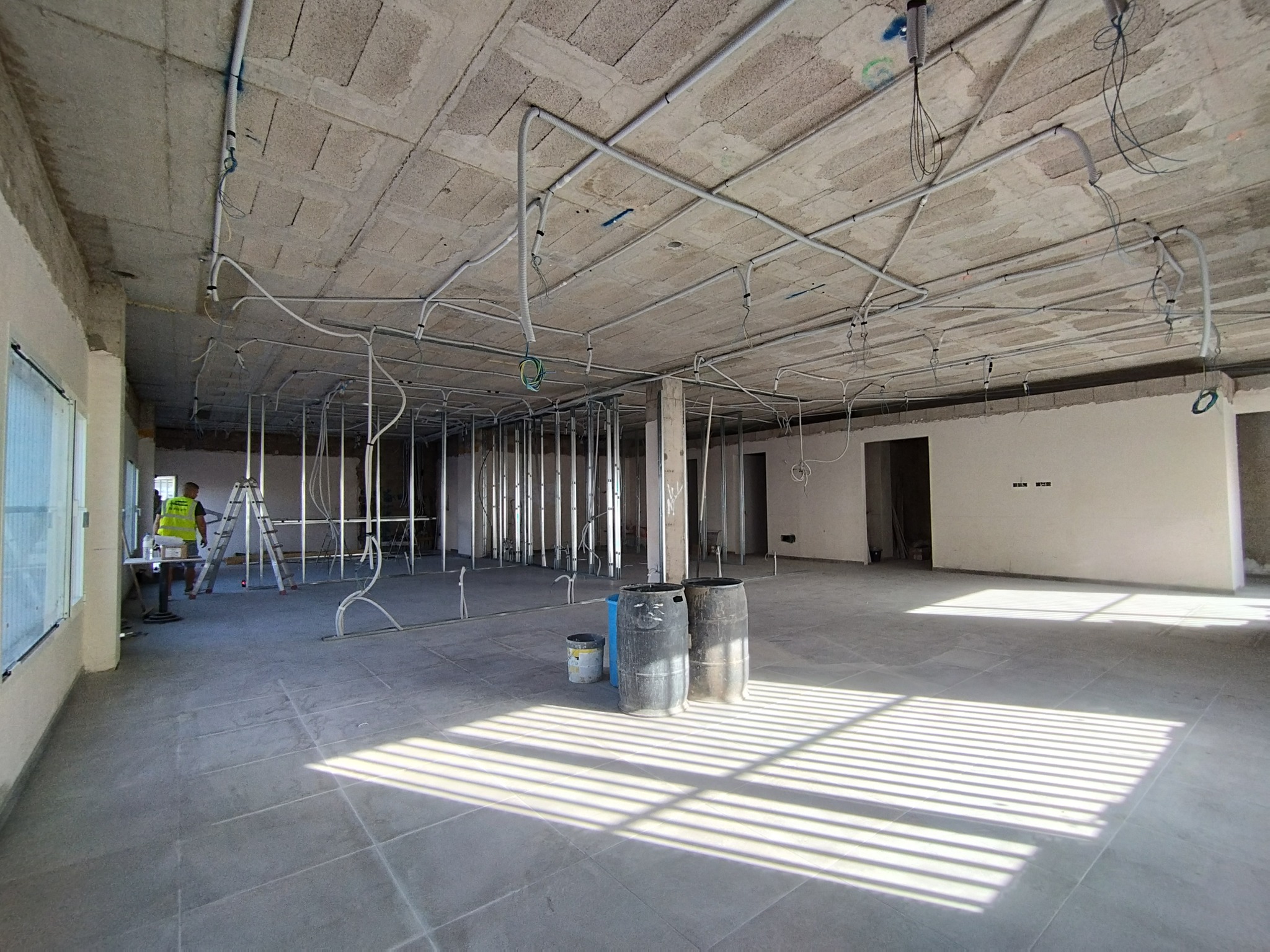 Durante esta semana, los trabajos se han enfocado en la colocación del nuevo suelo y en los cambios relativos a la distribución interior del local.